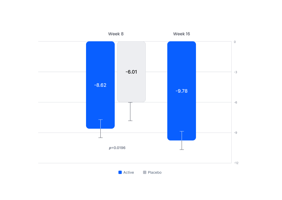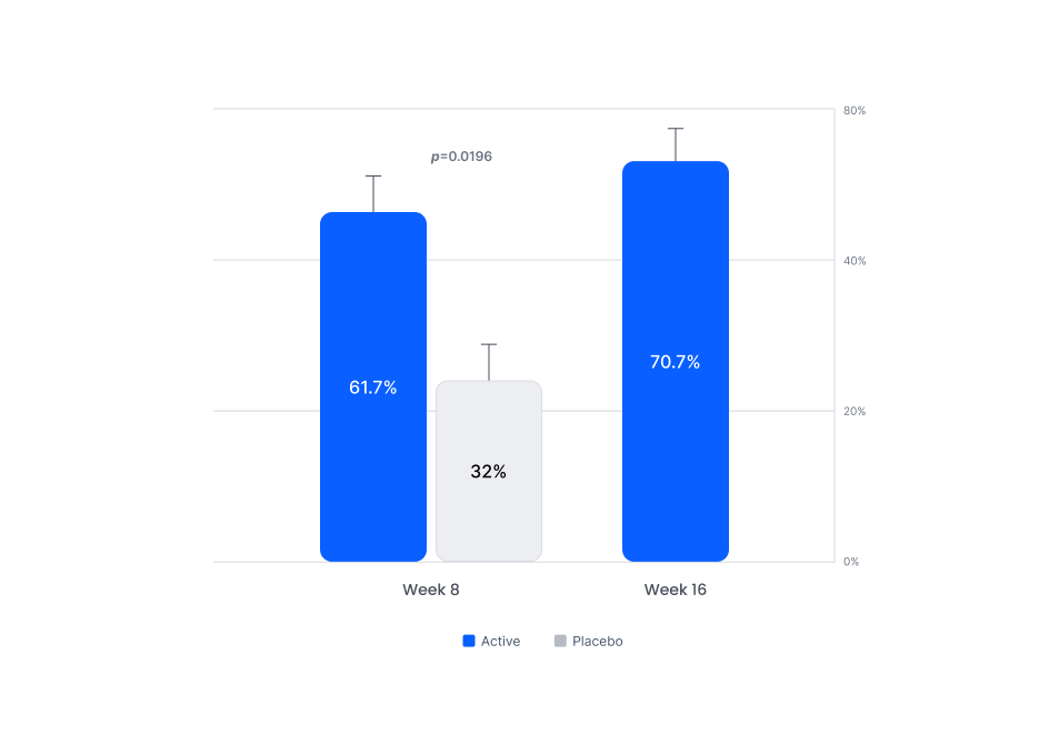 • 8-week blinded treatment period → followed by 8-week open-label phase