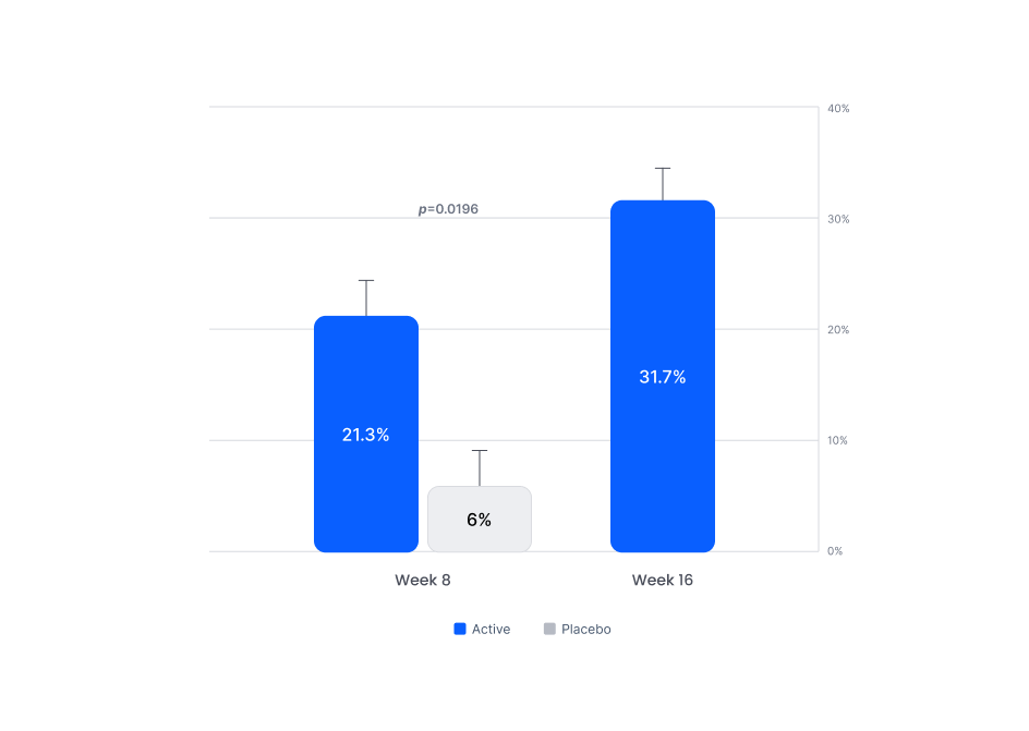 More than two-thirds of patients achieved clinically substantial improvement, and nearly one-third reached full remission by Week 16.